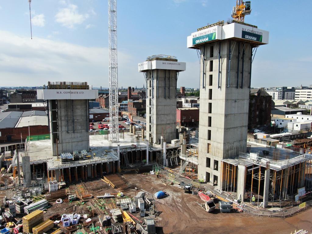 M.R. Concrete is one of the first companies in the uk and Ireland to implement this highly effective technique. The main advantages are the savings in project time, which in-turn provides a time-saving of up to 40%. This allows completion time to be reduced to only 7 days per floor over traditional formwork techniques that require 12 days per floor. This technique also reduces the requirement for crainage by up to 50%. These cost and time savings are making this method more popular.